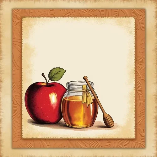 כרטיס שנה טובה – תפוח וצנצנת דבש בתוך המסגרת