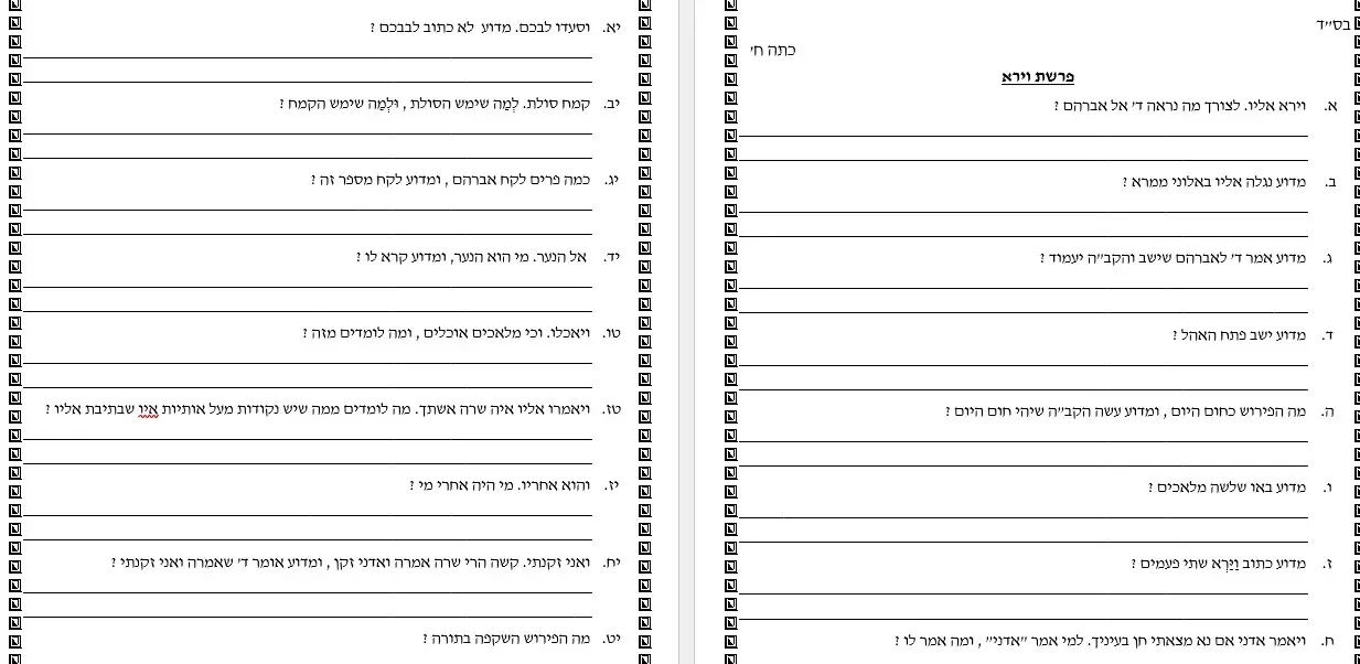 מבחן בפרשת וירא 77 שאלות