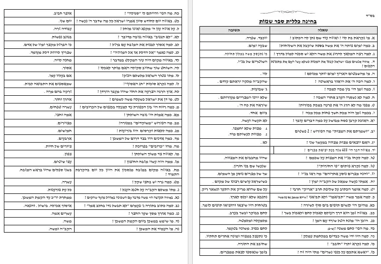 מבחן פומבי ספר שמות – 55 שאלות ותשובות