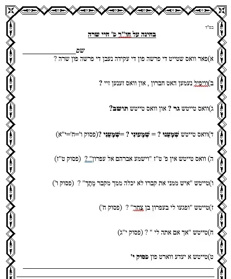 מקבץ שאלות – מהרבה מלמדים – כל אחד בוחר מה שמתאים לו – אידיש
