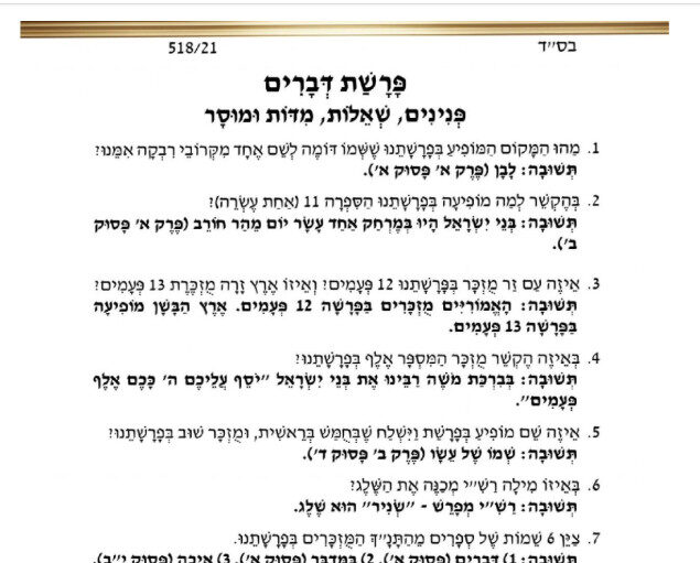 פנינים וחידודים לפרשת דברים עם תשובות – פרחי הדגל