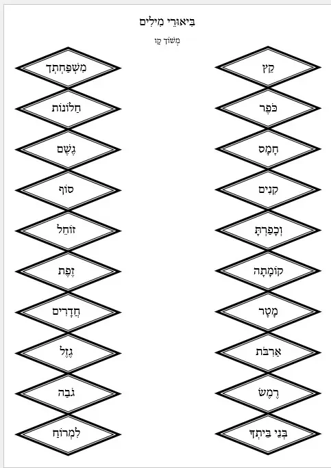 פרשת נח – דף עבודה – הבנת הנקרא – ביאורי מילים משוך קו נח תיבה