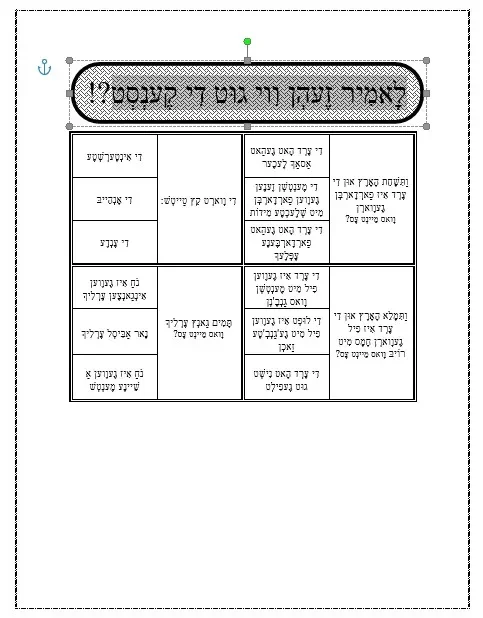 פרשת נח – דף מבחן – טייטש + הבנה – אידיש -לָאמִיר זֶעהְן וִוי גוּט דִי קֶענְסְט