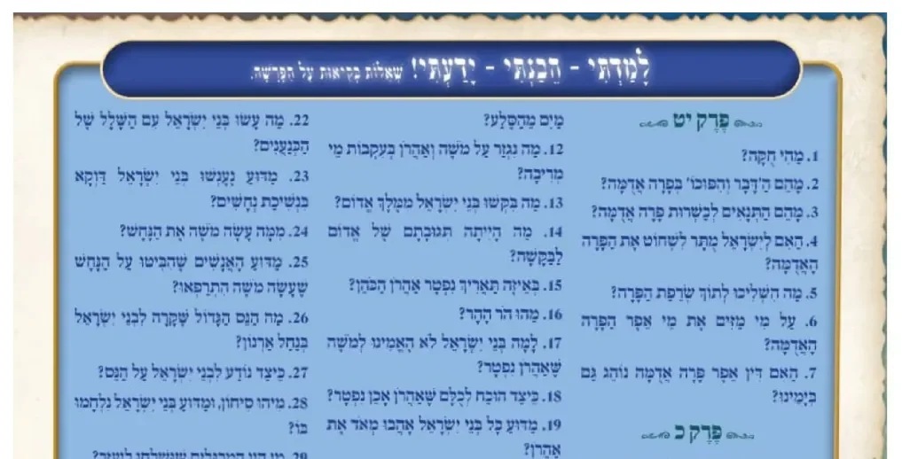 שאלות בקיאות משכן שילה לפרשת חקת