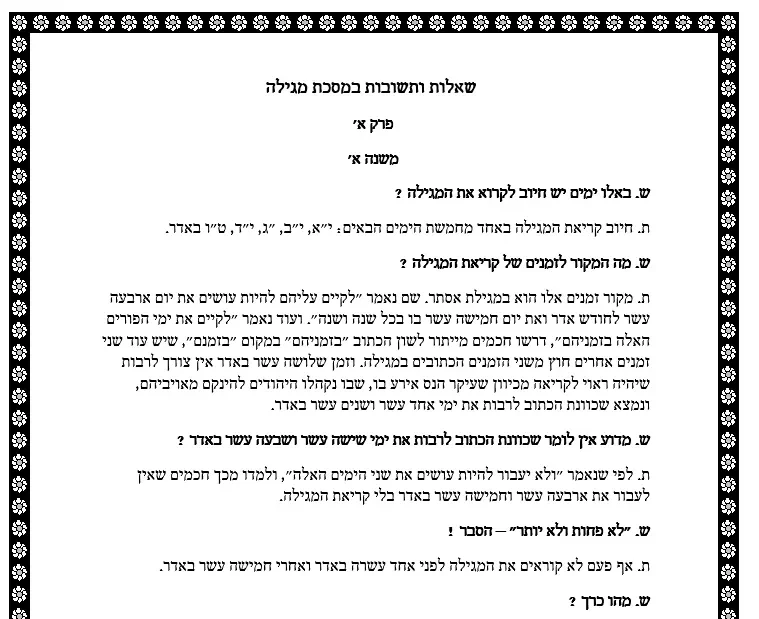 שאלות ותשובות על כל מסכת מגילה