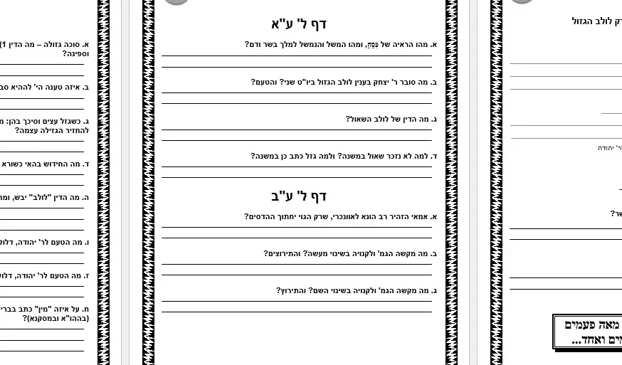 שאלות לחזרה – מסכת סוכה גמרא – על דפים כט-לה – פרק לולב הגזול