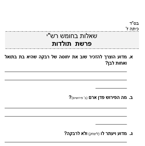 02 – שאלות בחומש רשי – פרשת תולדות – כיתה ז