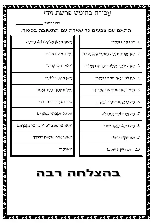 09 – עבודה – הבנה – התאם עם צבעים – ויחי
