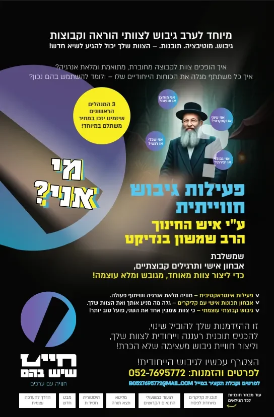 מרכז "חיים שיש בהם" בהובלת הרב שמשון בנדיקט שליט״א מעניק לעולם החינוך תוכניות שמשלבות תוכן עמוק וערכי – עם חוויה חיה, מוחשית ומרגשת. כי כשמעבירים את הדברים נכון – הם נכנסים ללב.