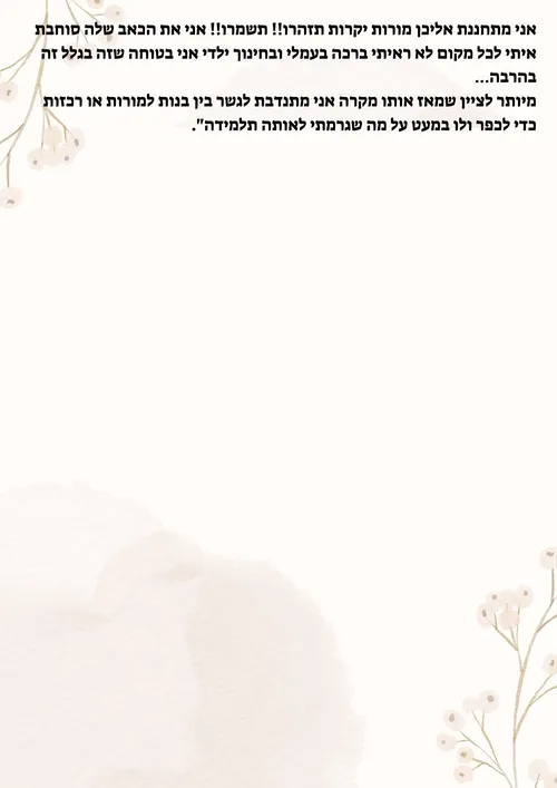 המכתב פורסם במערכת 'כל כבודה', דרכה ניסתה המורה לאתר את אותה התלמידה (שבינתיים משפחתה עברה דירה) ולהעביר מסר נוקב לכל נשות החינוך…
